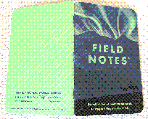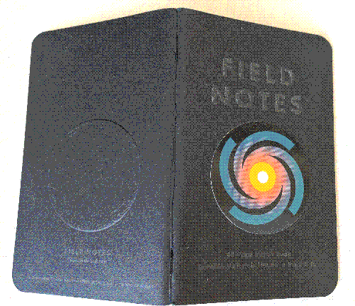 Notes: This book is somewhat rare, being a subscriber exclusive that's a few years old. I acquired it in an especially generous trade with another Field Nut. The front of the book is actually blank, but it worked very well to put one of Aaron Draplin's cosmic themed stickers on the front.