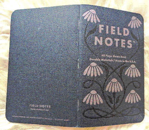 Notes: I got this Birch Bark notebook in a trade. When I was first starting out with Field Notes, I didn't really see the value of plain notebooks like this, but now I see the potential in being able to draw and paint on the covers or modify them in other ways. After putting some of these Cinderella stamps by Lisa Congdon on it, I posted a picture of this notebook to the Field Nuts group and the crowd went wild. I did end up putting a little glue under the stamps, as the gum on the back was not enough to keep them well stuck, but they held up through the notebook's use.
