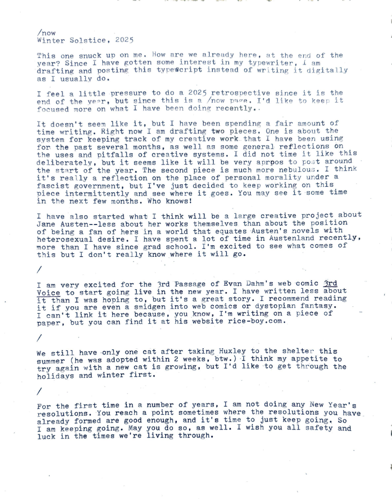 I got the idea of the /now page from Derek Sivers, which I found through 32-Bit Cafe.